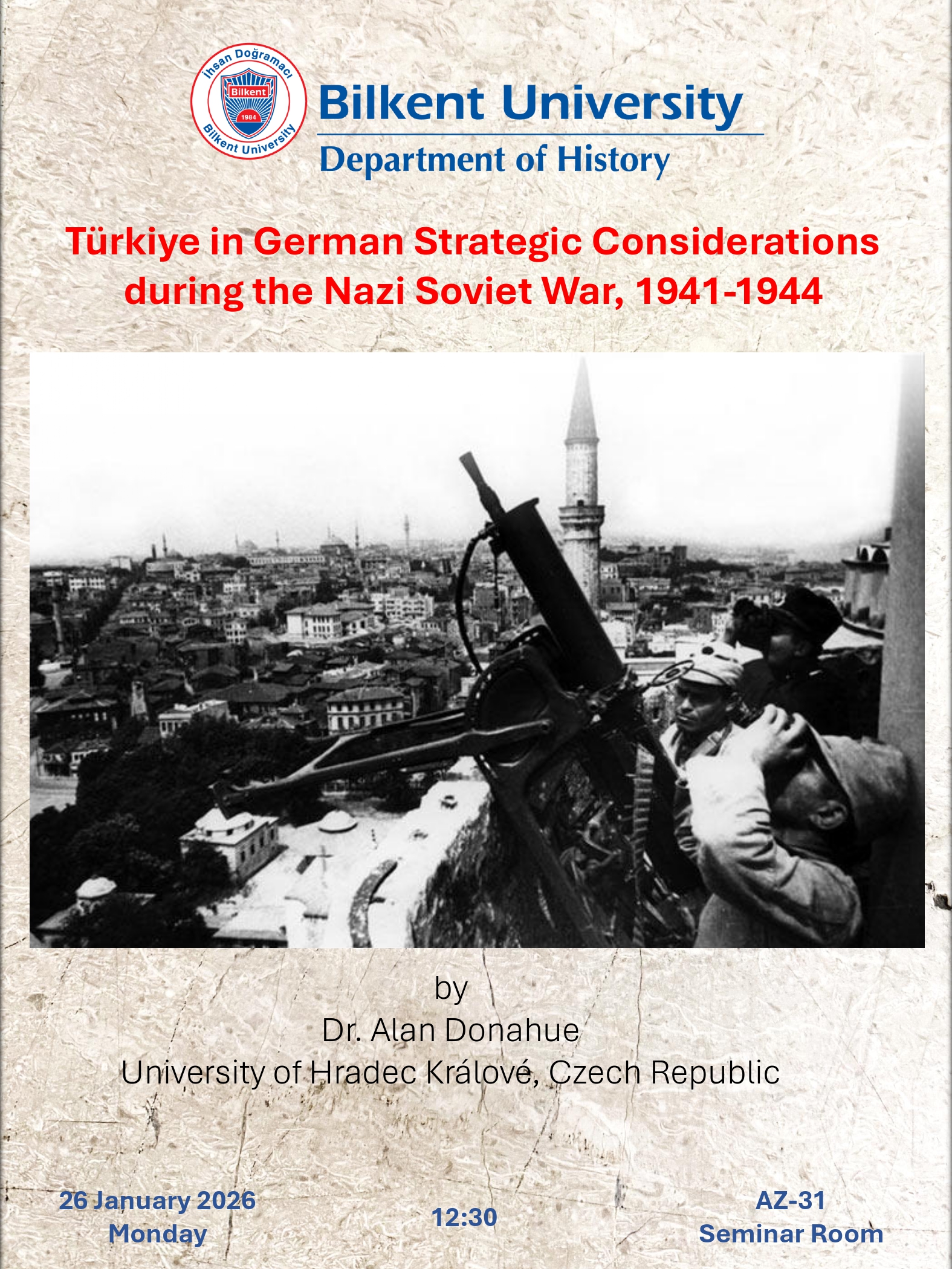 The Department of History and the Bilkent Historical Society invite all graduate students who would like to participate, to the Bilkent History Graduate Symposium which will be held in 2nd and 3rd of April, 2026